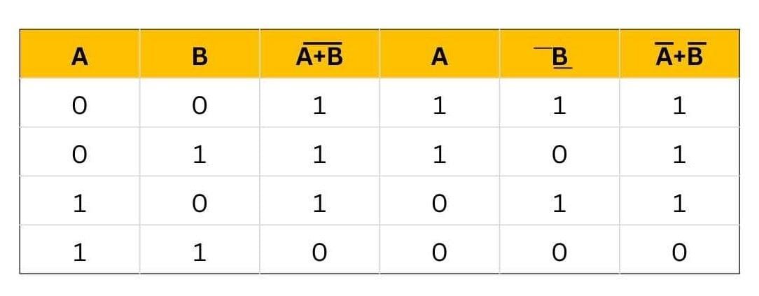 Here is a table that shows the verification of the first theorem of De Morgan:
