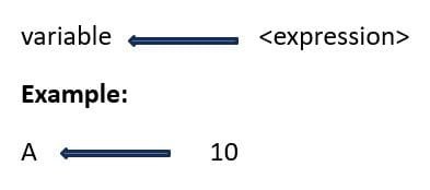 In an algorithm, the left arrow (+-) denotes the act of assigning the value of its right-hand side to the variable on its left. Some people take liberty and use assignment operator to assign values to variables in algorithms.