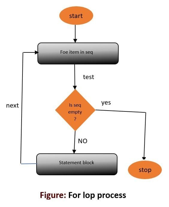 St represents the set of statements to be repeated for each item in the sequence. When the statements block gets executed for each item in the sequence, the for-loop stops.